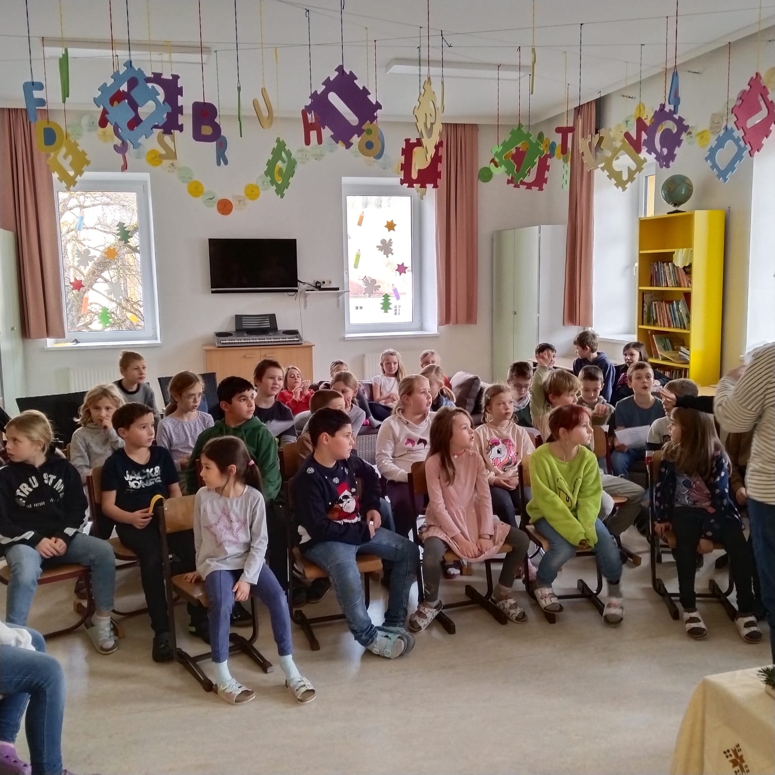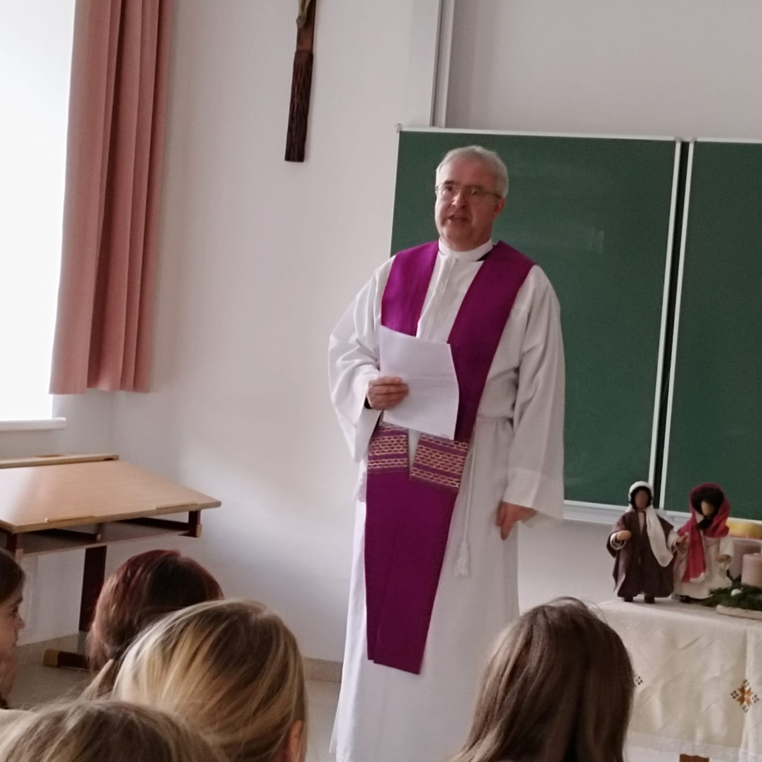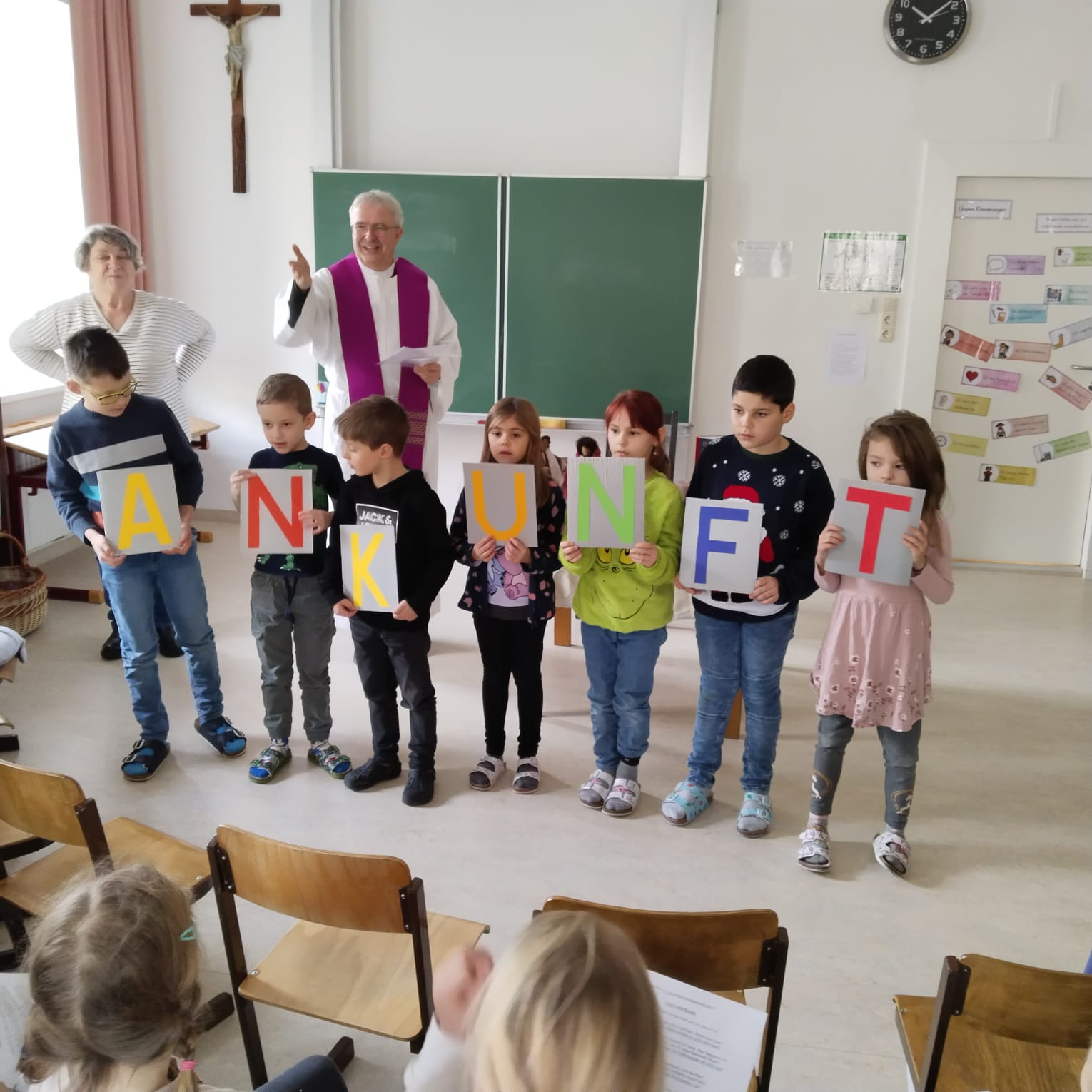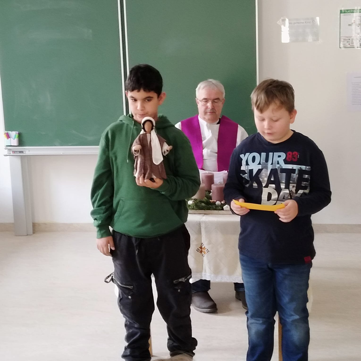 Heute fand in unserer Schule die feierliche Adventkranzsegnung statt. Passend zur Einstimmung auf die Adventzeit wurde der Text „Jesu Geburt wird angekündigt“ vorgelesen. Dieser Text erinnert uns an die Bedeutung des Advents, der „Ankunft“ Christi.