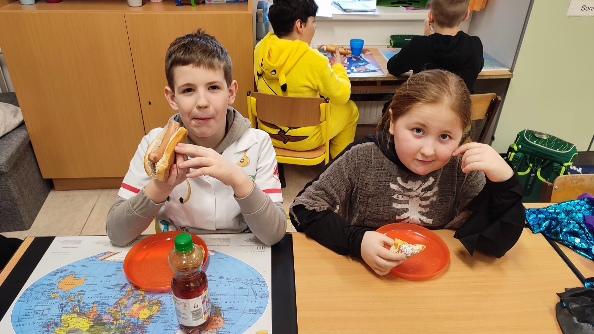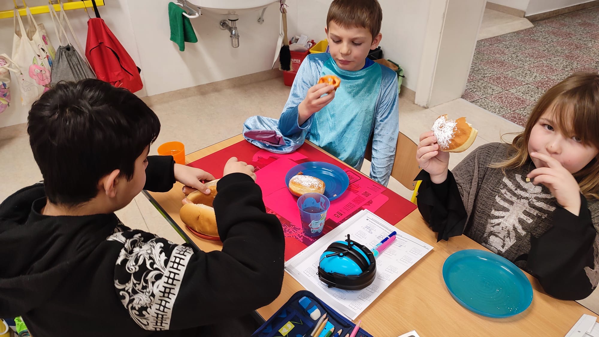 Bei verschiedenen Spielstationen konnten die Kinder ihr Geschick zeigen und gemeinsam viel Spaß erleben. Ein herzliches Dankeschön gilt allen Eltern, die das Schulbuffet organisiert und mitgestaltet haben. Durch ihr Engagement wurde die Feier zu einem besonderen Erlebnis für unsere Kinder. Ebenso bedanken wir uns sehr herzlich bei unserer Frau Bürgermeister für die großzügige Krapfenspende. Die Faschingskrapfen haben hervorragend geschmeckt und große Freude bereitet.