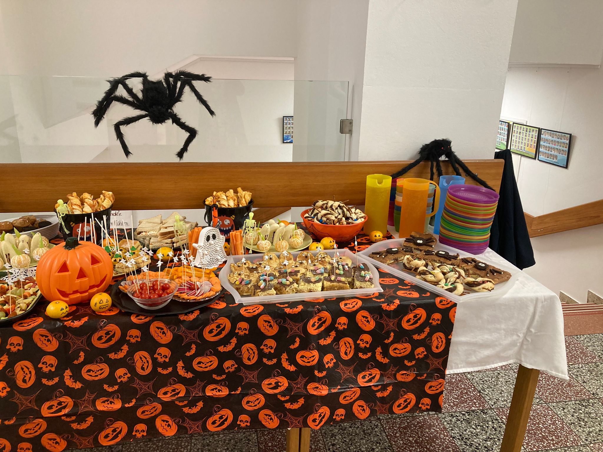 Heute gab es ein großartiges Schulbuffet, das von unseren lieben Eltern organisiert wurde. Mit tollen Ideen und kreativen Kreationen rund ums Essen und Halloween war für alle etwas dabei. Die Schülerinnen und Schüler haben die gruselig leckeren Snacks sehr genossen!