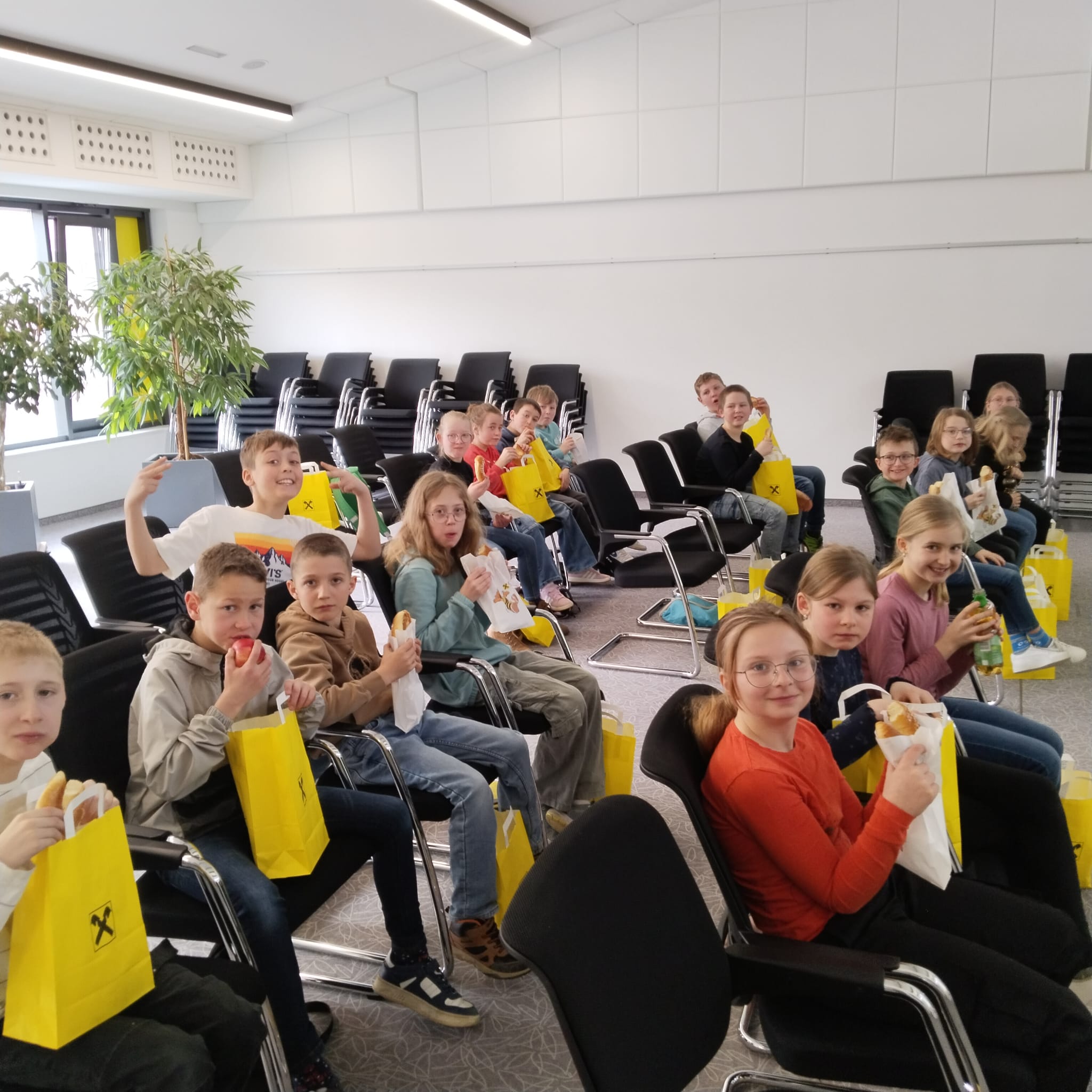 Wir erfuhren viel über die Geschichte der Raika, welche Produkte man in der Bank abschließen kann, sowie über die Themen Sparen, Kredite und Zinsen.