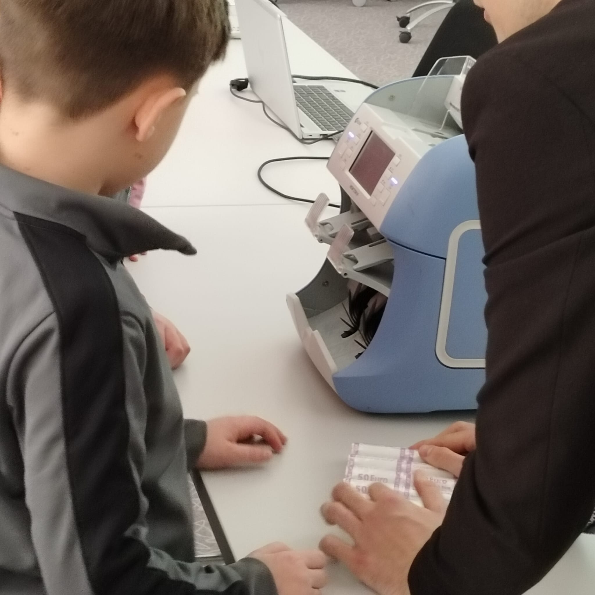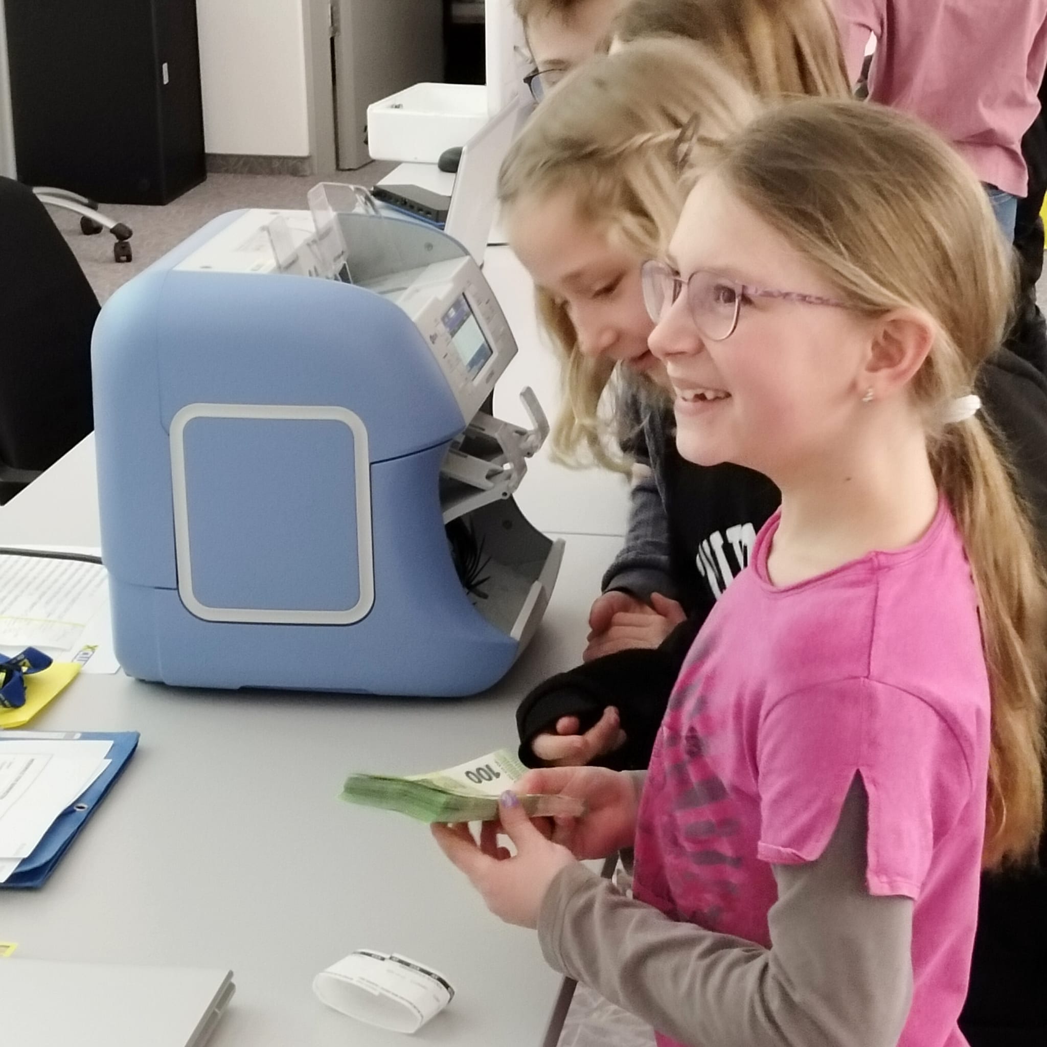 Besonders interessant war der Teil über die Sicherheitsmerkmale unserer Banknoten. Ein echtes Highlight war die Geldzählmaschine und das Schätzen des Geldbetrages im Geldsack – das sorgte für viel Begeisterung!