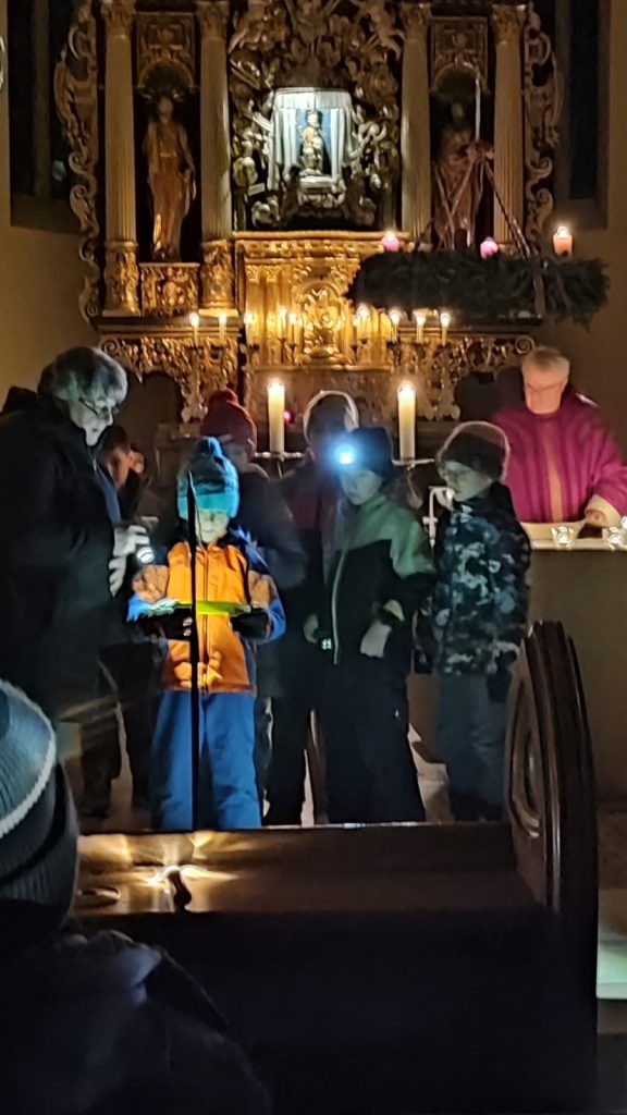 In den frühen Morgenstunden versammelten sich sich die Kinder der Volksschule zu einem besinnlichen Gottesdienst in der Kirche. Diese Messe stand ganz im Zeichen des Lichtes.