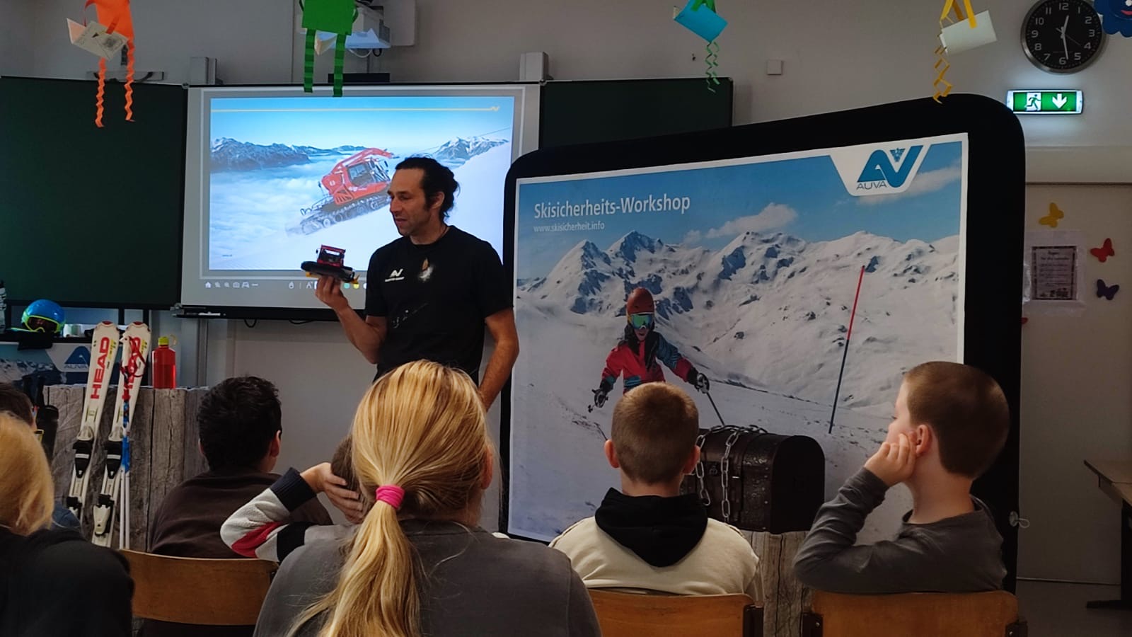 Damit alle Kinder bestens für die kommende Wintersportsaison vorbereitet sind, fand in unserer Volksschule ein spannender Schisicherheits-Workshop der AUVA statt. Gemeinsam mit einem Experten der Allgemeinen Unfallversicherungsanstalt (AUVA) lernten die Kinder alles Wichtige rund um das sichere Verhalten auf der Piste.