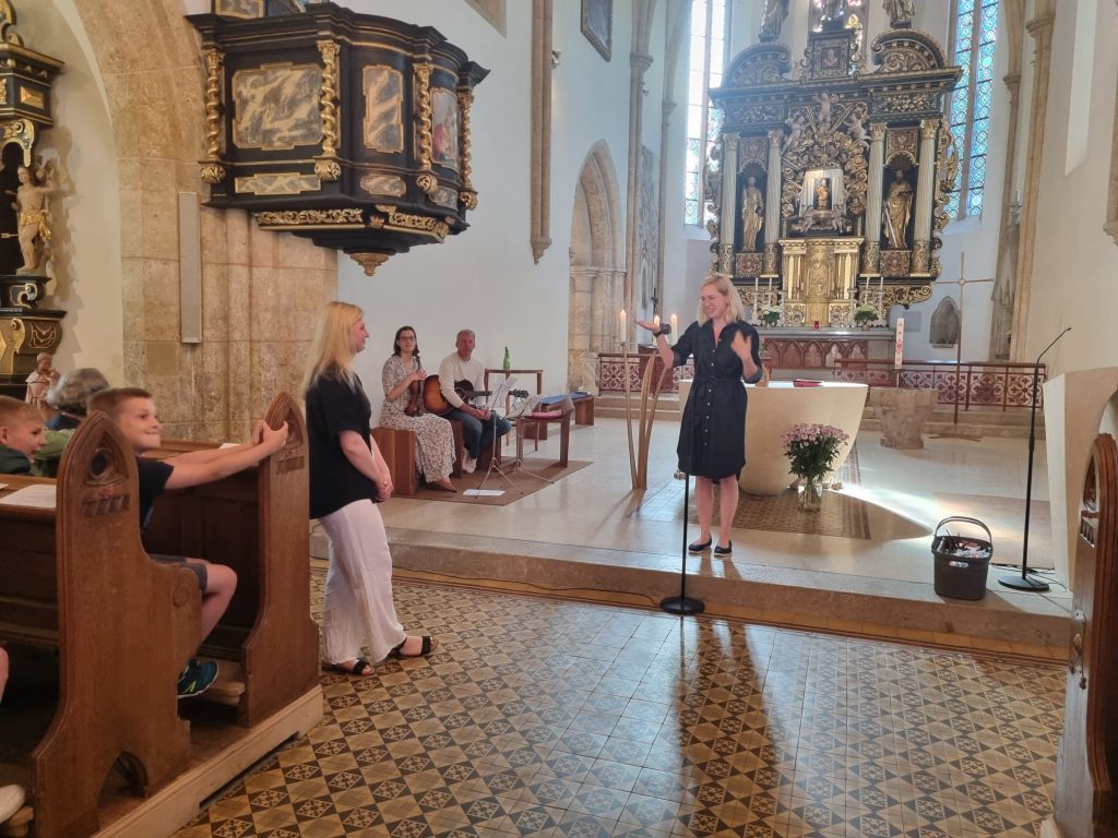Im Mittelpunkt des Gottesdienstes stand eine Geschichte aus „Der kleine Prinz“: Die Erzählung, wie der kleine Prinz einen Fuchs zum Freund gewann und mit viel Liebe eine Rose pflegte. Sie wurde zum kostbarsten Schatz – eine Erinnerung daran, dass jeder für das, was er liebt, auch Verantwortung trägt. Die Rose steht als Symbol für das Wertvolle in unserem Leben: Sie duftet, blüht – hat aber auch Dornen.