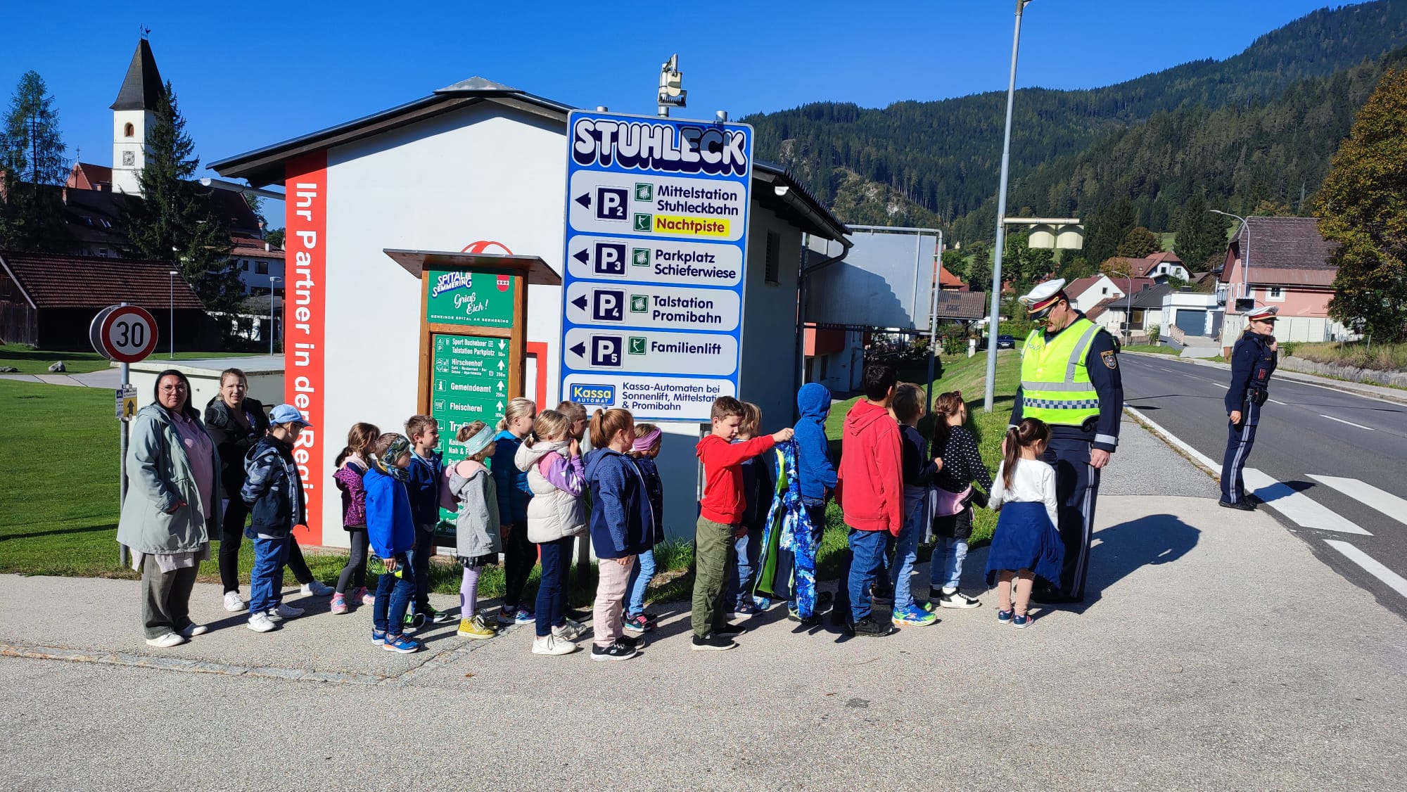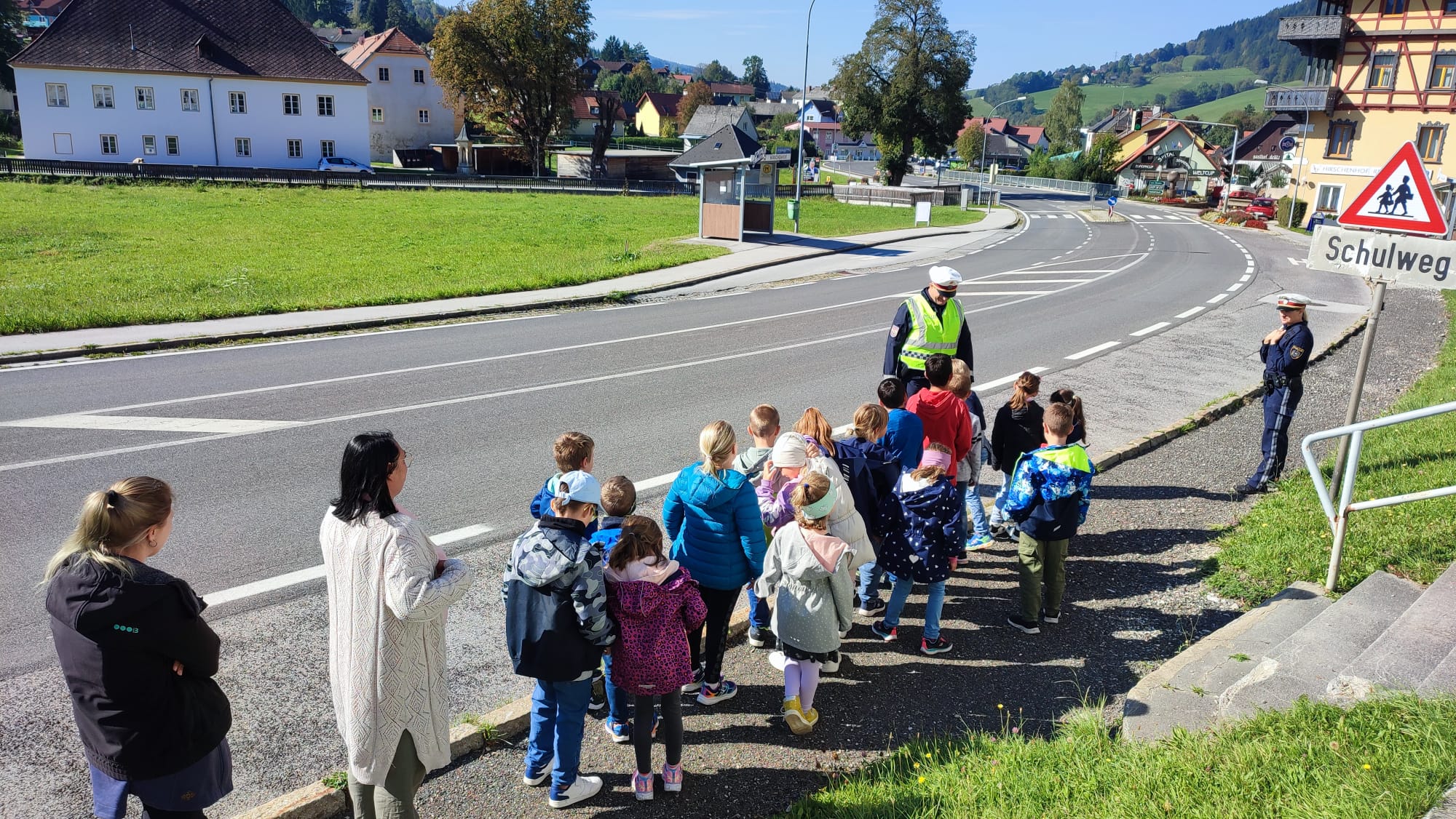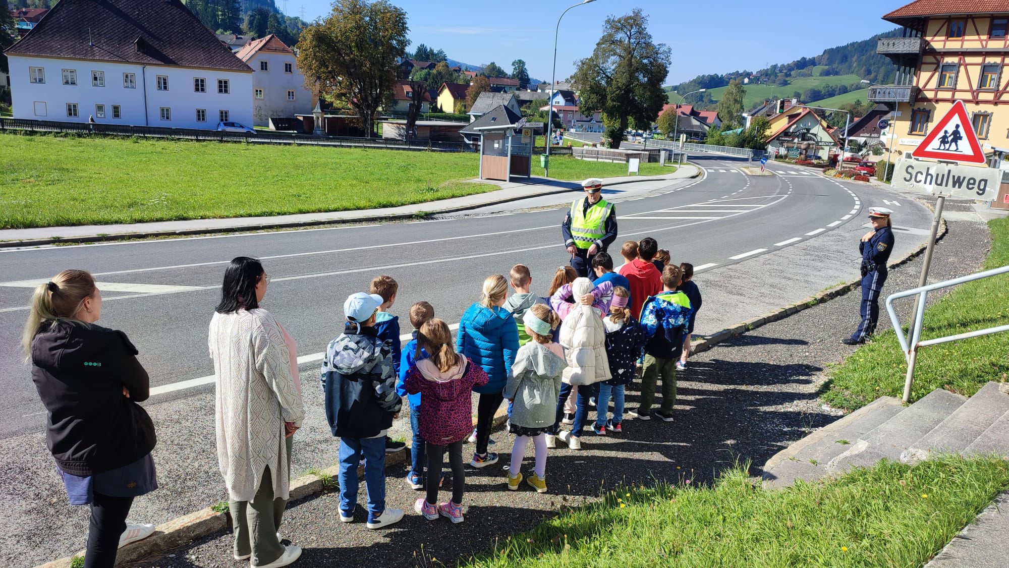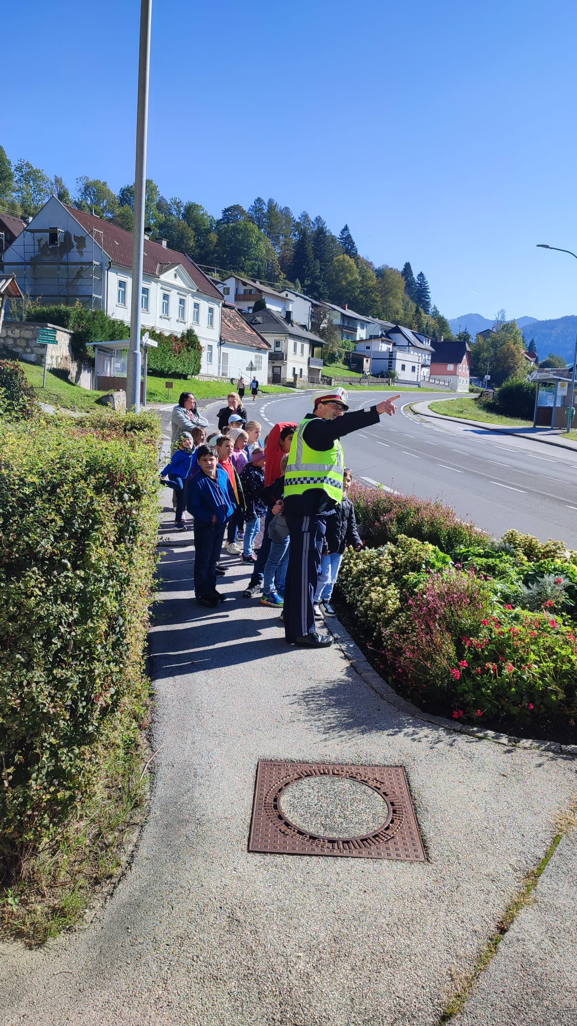 Die 1. Klasse erkundet mit der Polizei den Schulweg ….