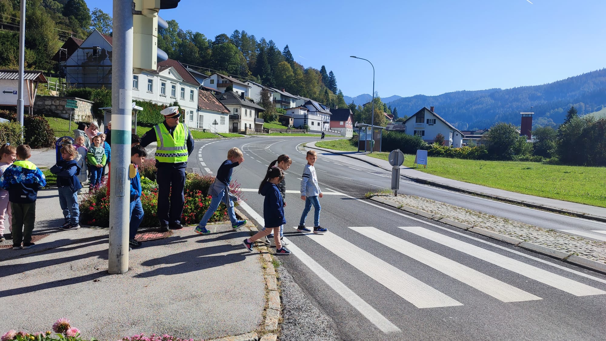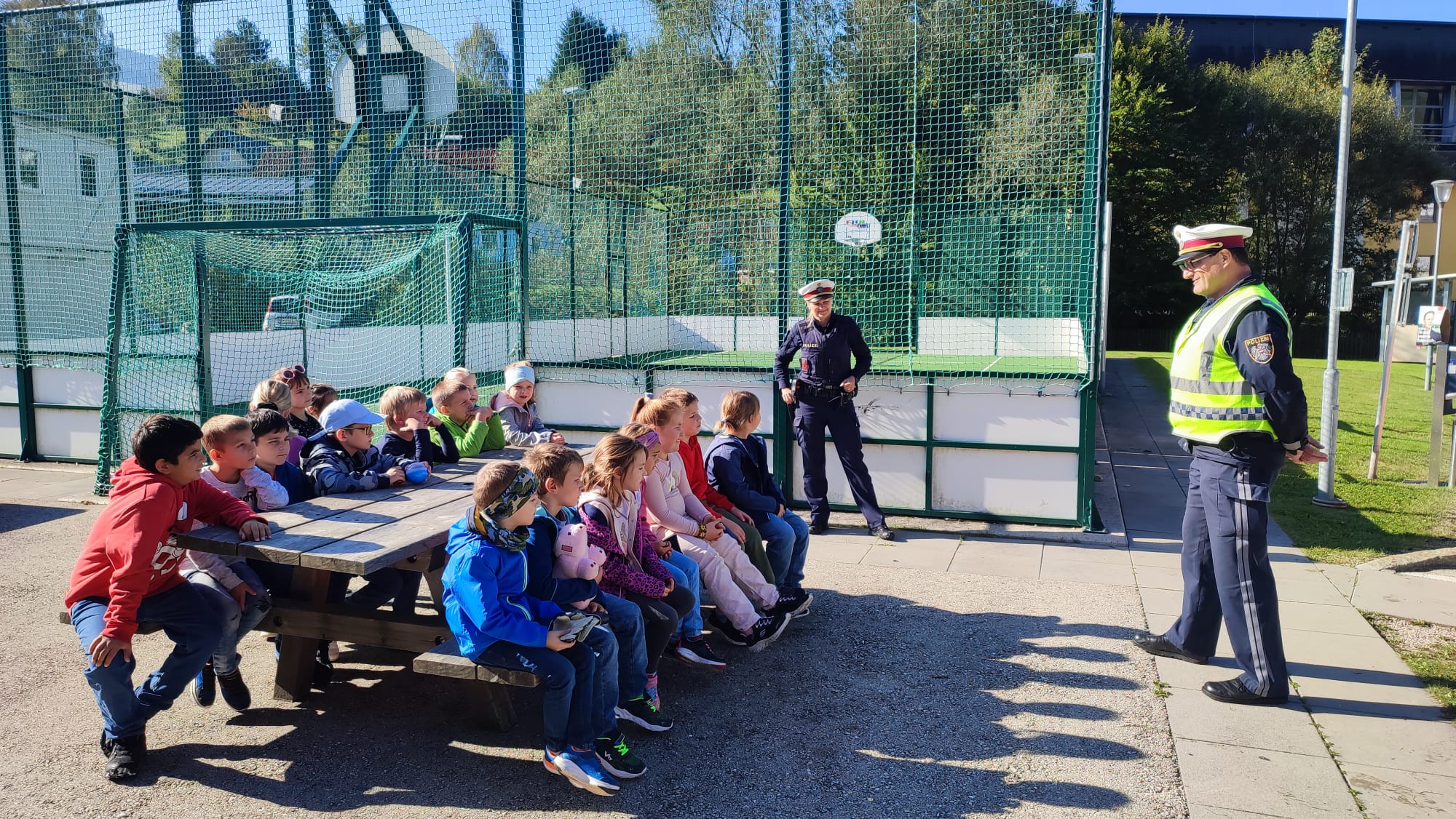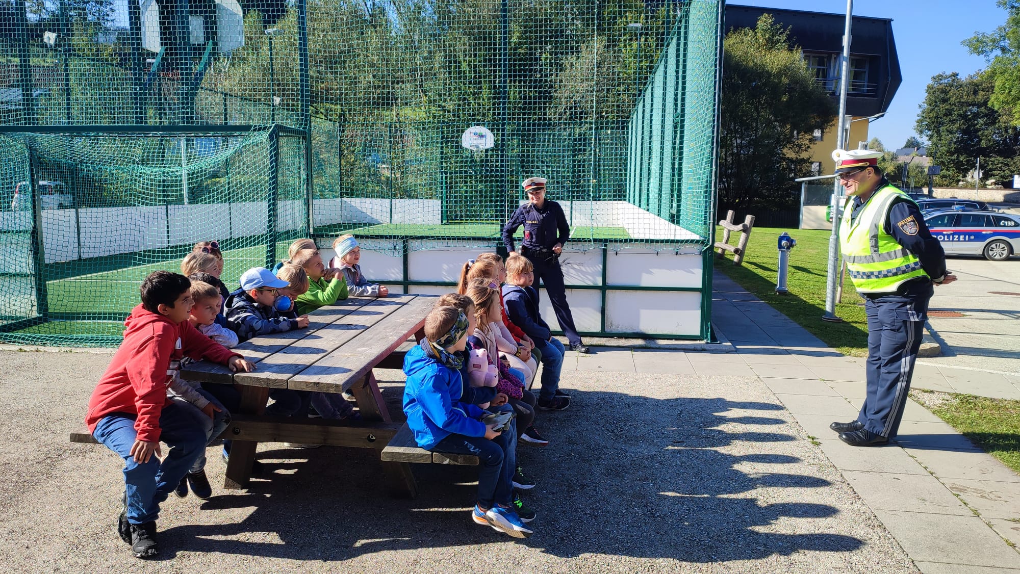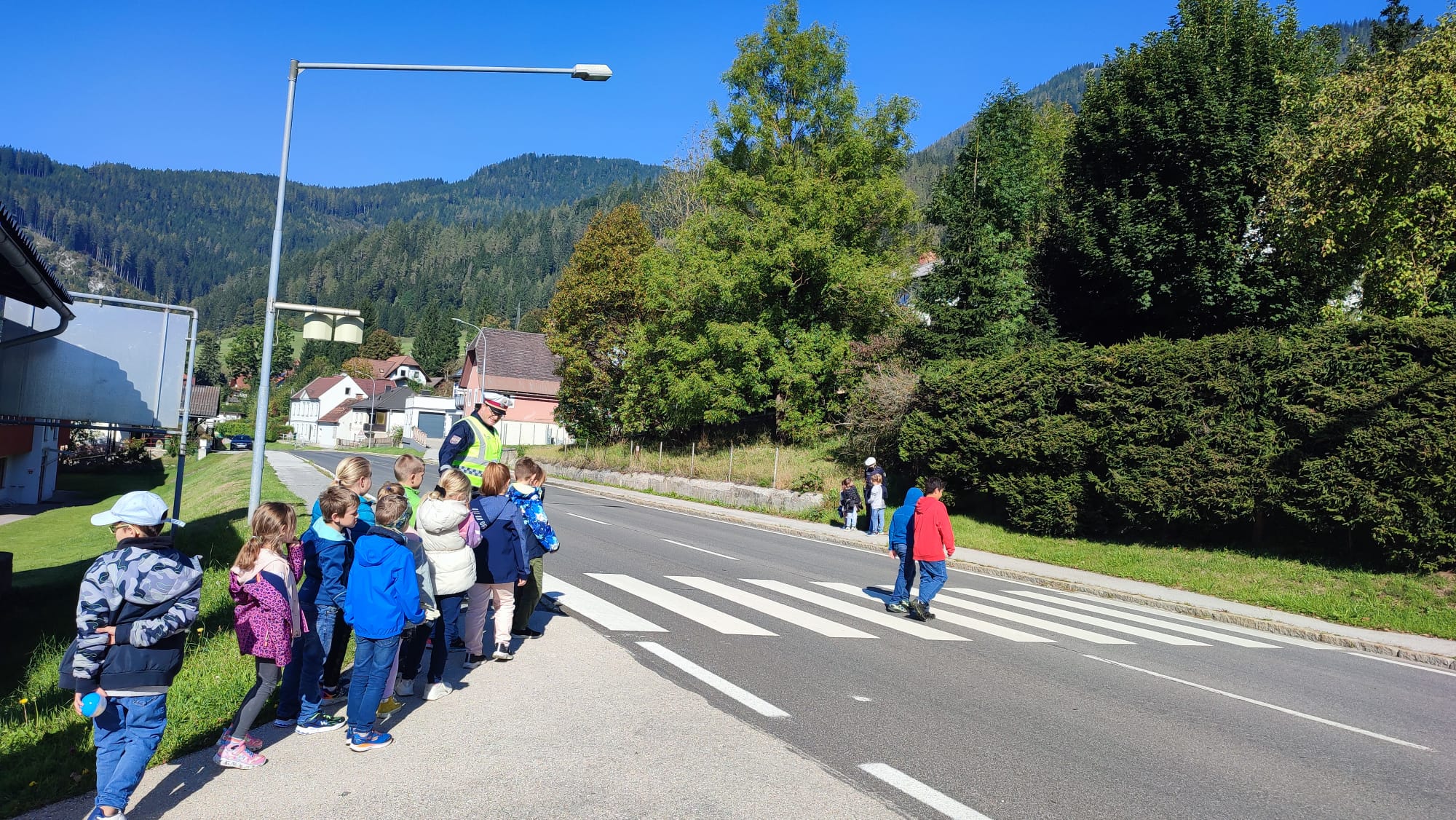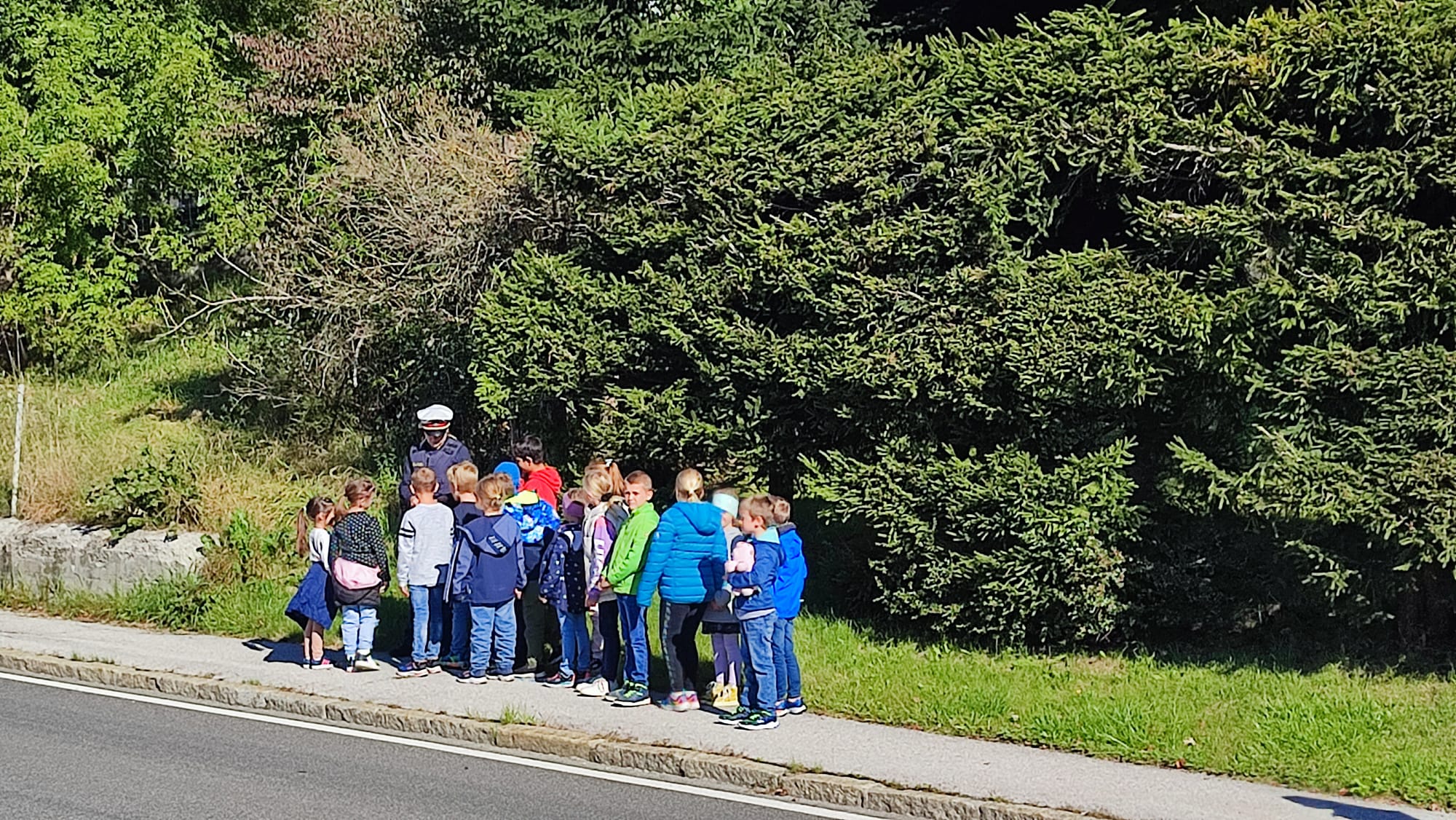 Die 1. Klasse erkundet mit der Polizei den Schulweg ….