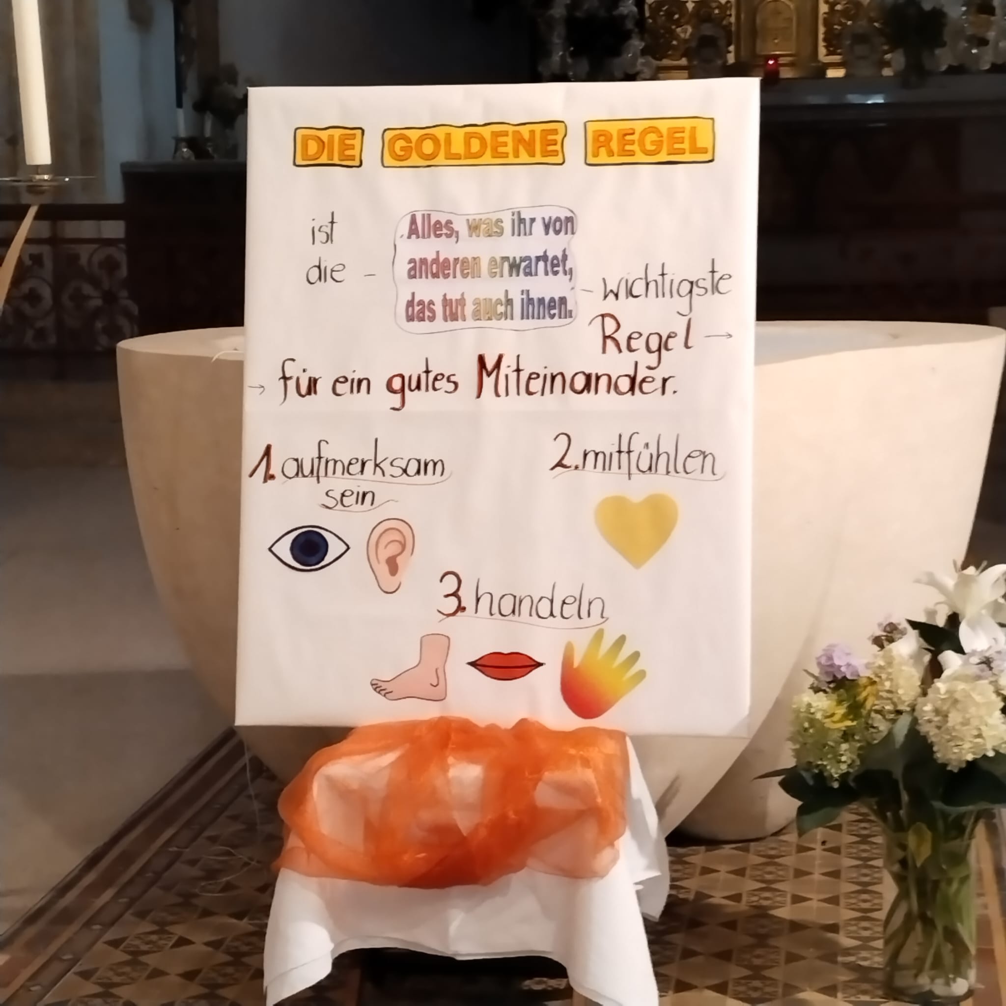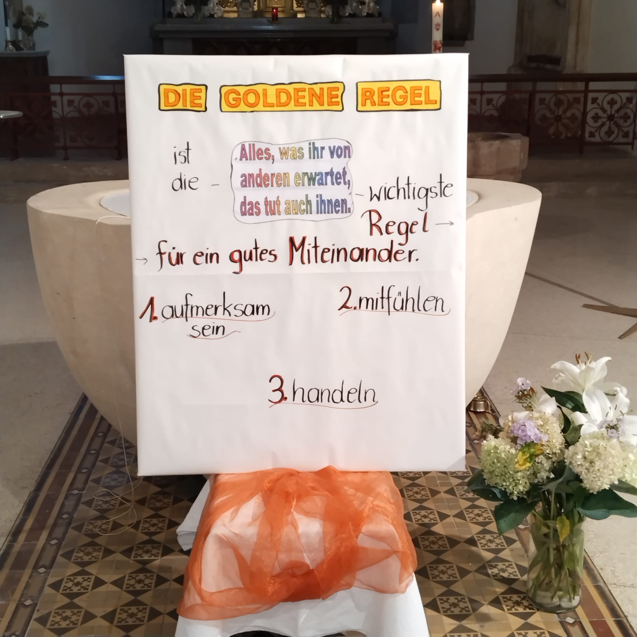 Im Gottesdienst stand die goldene Regel im Mittelpunkt: „Alles, was ihr von anderen erwartet, das tut auch ihnen.“ Es wurde darüber gesprochen, wie wichtig Aufmerksamkeit, Mitgefühl und Handeln für ein gutes Miteinander sind. Die Geschichte vom Bären verdeutlichte, wie Freundlichkeit und Hilfsbereitschaft unser Zusammenleben prägen können.