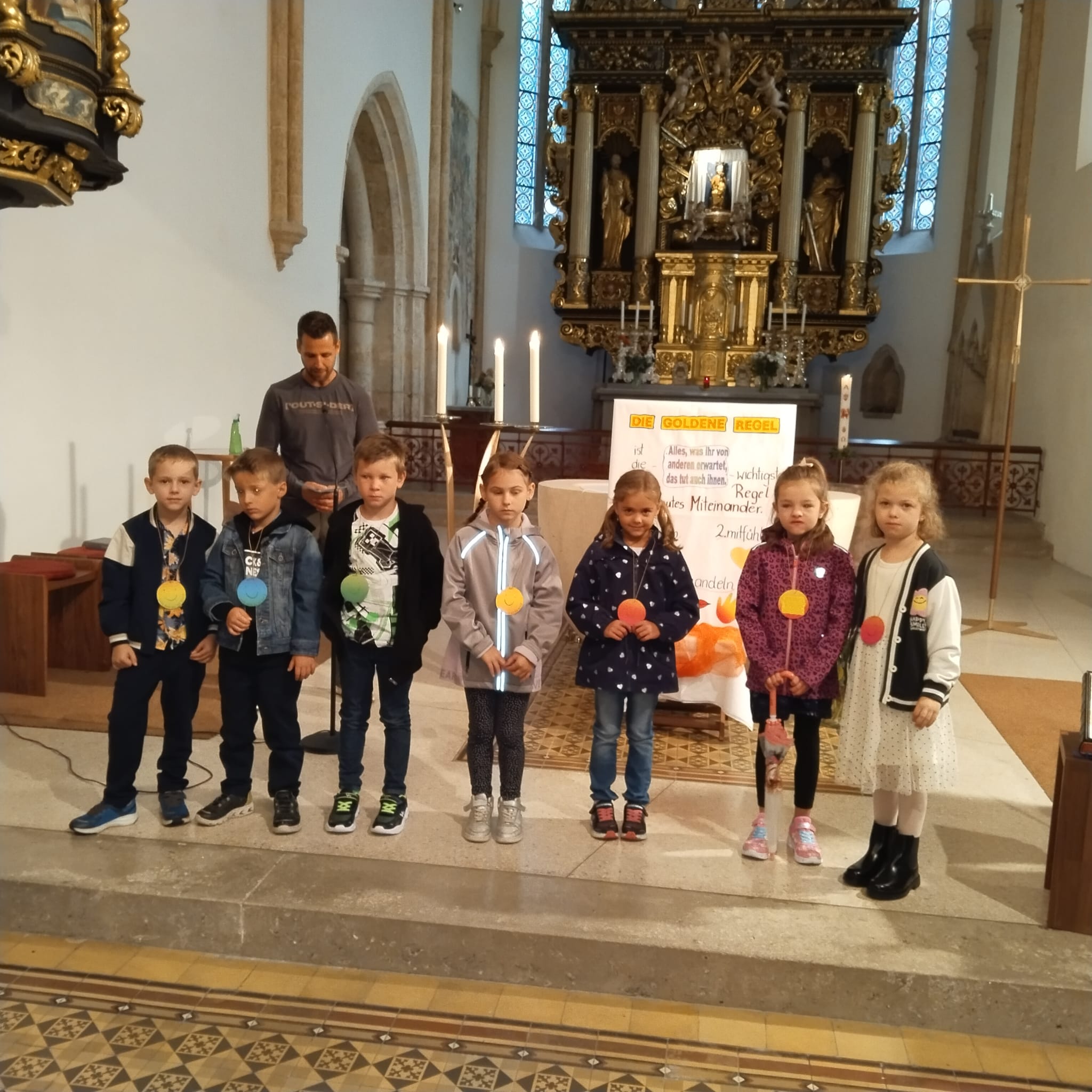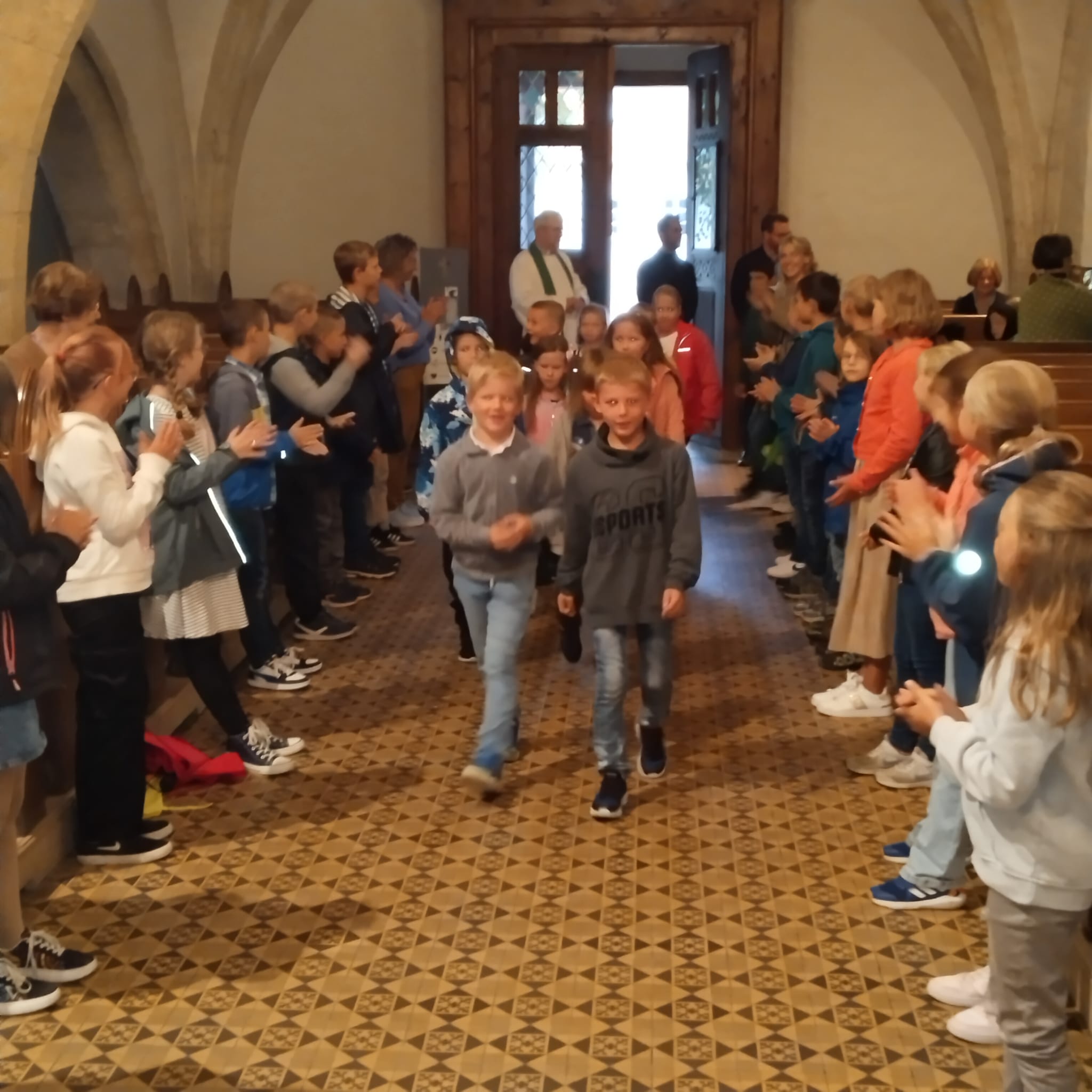 Beim ersten Gottesdienst des neuen Schuljahres wurden unsere Erst- und Zweitklässler herzlich willkommen geheißen. Die Dritt- und Viertklässler bildeten in der Kirche ein feierliches Spalier, durch das die jüngeren Schülerinnen und Schüler voller Freude einzogen.
