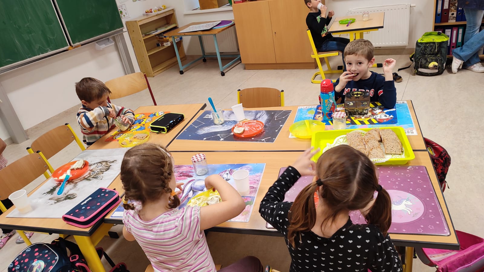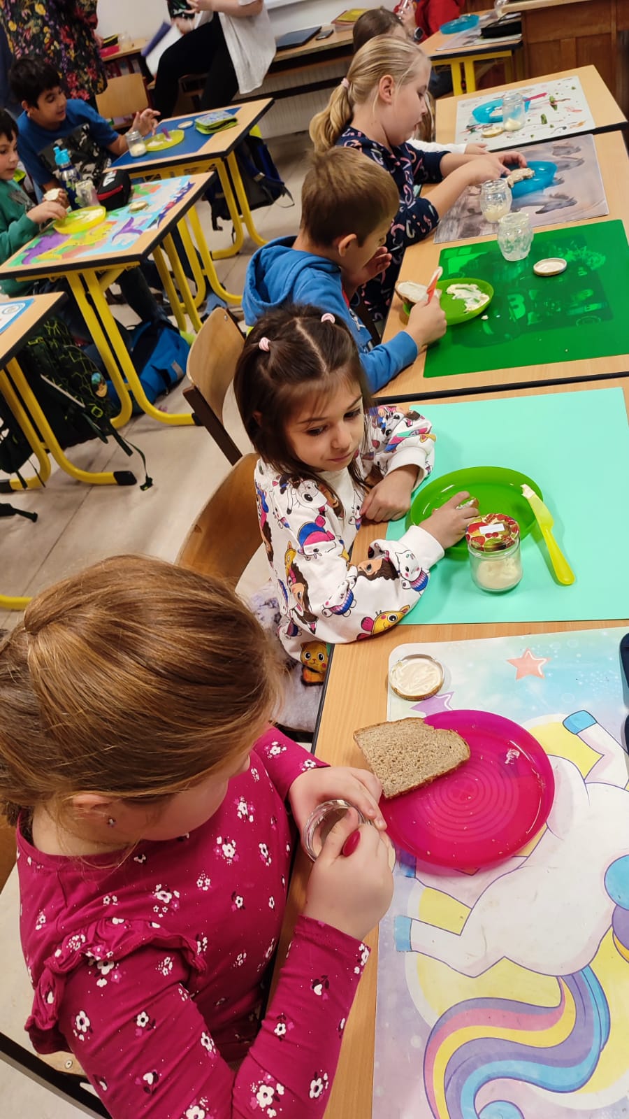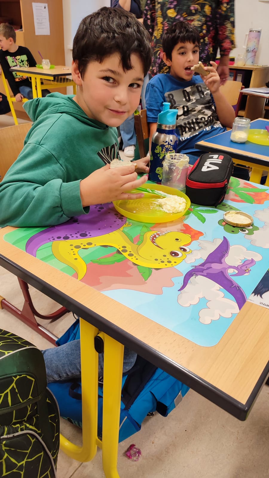 In der Praxis durften sie Butter schütteln, welche anschließend mit einem echten Bauernbrot verkostet wurde. Auch das Nebenprodukt vom Butter schütteln, die Buttermilch, durfte verkostet werden.