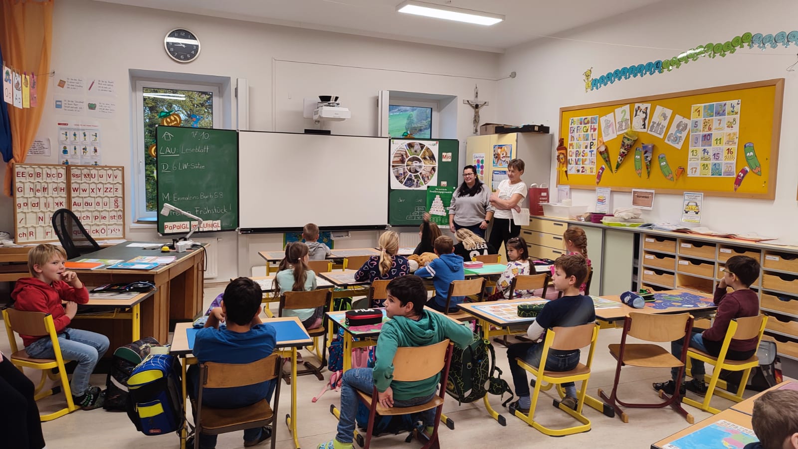 Die Kinder der 1. Klasse erfuhren von unserer Gemeindebäuerin Monika Streit viel Wissenswertes und Interessantes über die Milch und Milchprodukte.